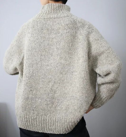 Простой вязаный свитер Puro создан для комфорта и удобства в носке. Он вяжется очень быстро и легко спицами 6.5 мм. Конструкция плеча пуловера вдохновлена плечом, которое часто можно увидеть на тренчкотах: с втачным рукавом спереди и рукавом-реглан сзади. Чтобы добиться такой конструкции, прибавки на спинке и переде были дифференцированы. Дизайн сохраняет чистую линию спереди, оставляя при этом свободу для движения сзади. Пуловер вяжется сверху вниз.
