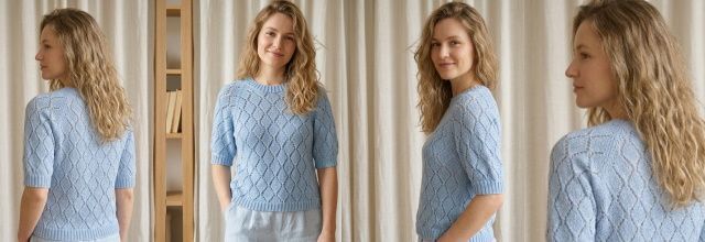 Плотность вязания:10x10 см (= 17 п. x 23 р.) узором на спицах 4.5 мм (после влажной блокировки)