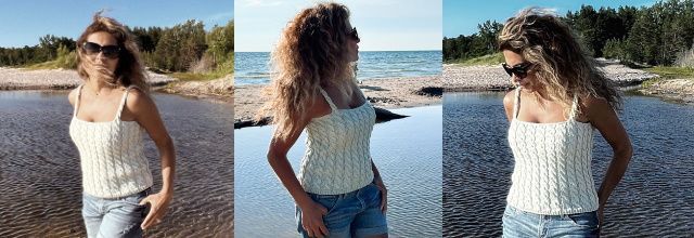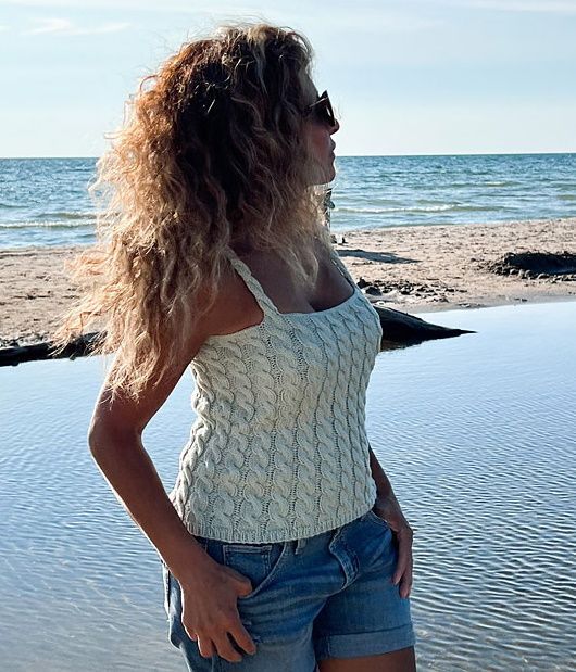 Вязаный топ Sage — это сексуально, элегантно и шикарно! Объемные косы вяжутся бесшовно по кругу до нужной вам длины, что делает этот проект мечтой для всех любителей кос! Плотное облегание с отрицательным припуском в 2.5 см позволяет носить его самостоятельно с юбкой или джинсами с высокой посадкой для вечера в городе, или носить слоями круглый год. Предоставлены два варианта выполнения бретелей-кос.