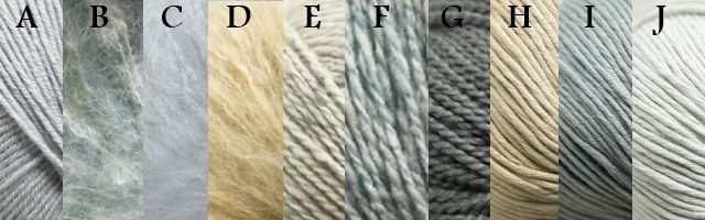 Нить Е - магнолия и нить F - айсберг (85% шерсть, 10% шелк, 5 % кашемир; 135 м/50 г).