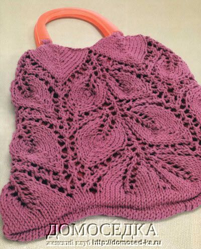 Слегка отпарить готовые детали сумки. Выполнить шов, соединяя ряд закрытия петель передней и задней стороны, формируя нижнюю часть сумки. Пришить ручки к каждой стороне по линии окончания ажурного узора (см. фото).