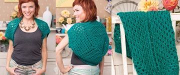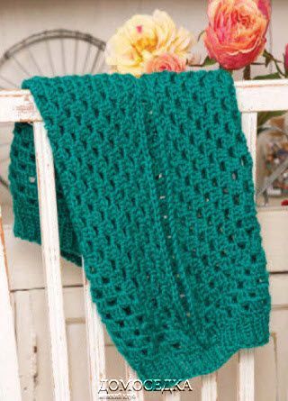 Вязаный ажурный шраг крючком выполнен одним полотном.
