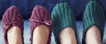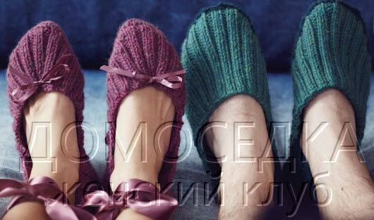 Вязаные женские балетки спицами и мужские тапочки станут отличной парой.