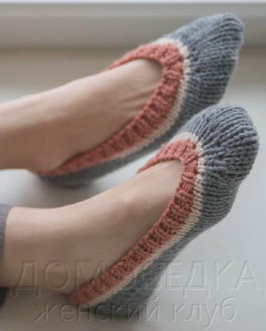 Изящные тапочки балетки вязаные спицами удобная домашняя обувь. Балетки не деформируют стопу и согревают ножки.