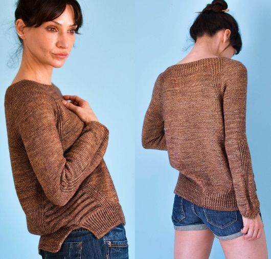Бесшовный вязаный пуловер May(be)Queen связан сверху вниз, имеет изогнутую окантовку скрещенной резинкой сверху донизу, облегающую форму тюльпана и слегка укороченный вид с романтическими рукавами, которые имеют как элегантную асимметричную нижнюю часть в форме колокола, так и нежный мотив, продолжающий основной текстурный элемент джемпера. Боковые панели с горизонтальными текстурными полосками наклоненными к центру непрерывной диагональной линией, которая переходит в разрезы этого фасонного предмета одежды. Укороченные ряды, добавленные сзади, создают удлиненную спинку, но сохраняет переднюю часть достаточно высокой для удобной посадки.