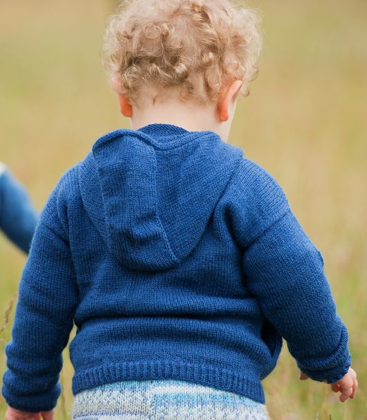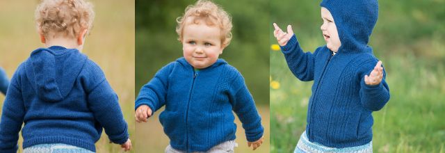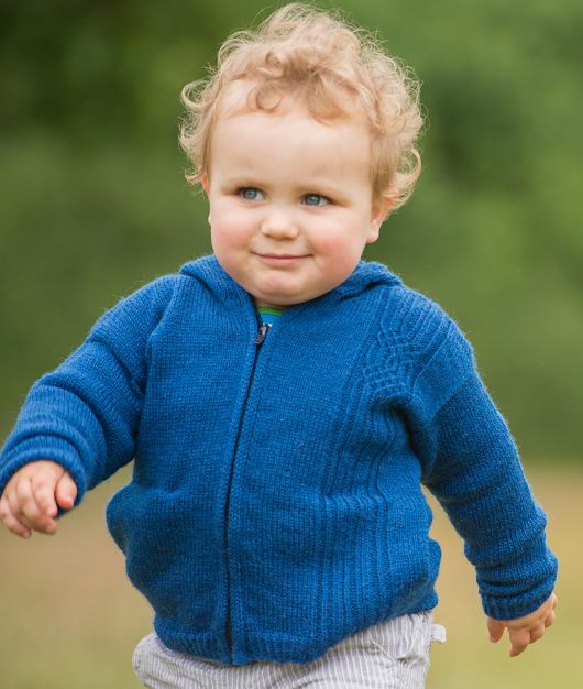 Симпатичная детская вязаная куртка на молнии с капюшоном и карманами. Куртка выполняется одним полотном до проймы, затем петли разделяются на полочки и спинку и вяжутся раздельно до линии плеча. Петли для рукавов поднимаются из края проймы и вяжутся сверху вниз.