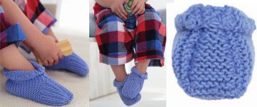 Симпатичные детские носочки связаны спицами из натуральной шерстяной пряжи обычной платочной вязкой.