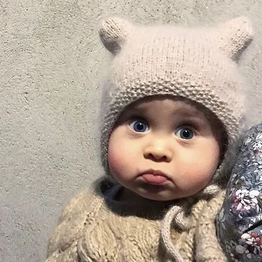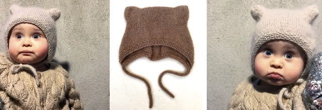 Детский вязаный чепчик «Медвежонок» с милыми круглыми медвежьими ушками.