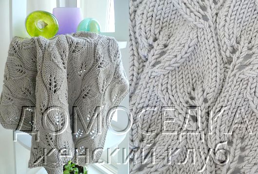 Плотность вязания: 11.5 см = 1 раппорт узора с листьями.