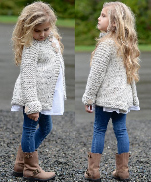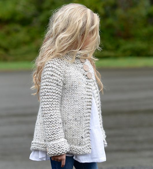Простой, но стильный детский вязаный жакет Brink выполнен спицами из очень объемной пряжи. Тело жакета вяжется единым полотном регланом сверху вниз. Затем выполняются рукава и воротник.