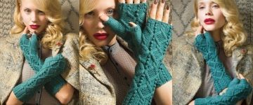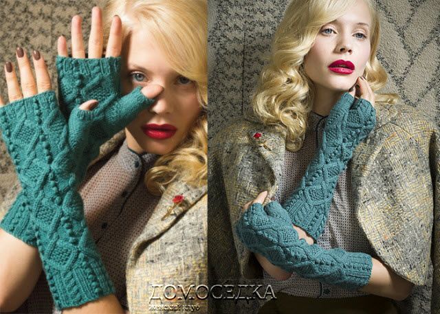 Красивые длинные митенки связаны спицами витым узором с шишечками.