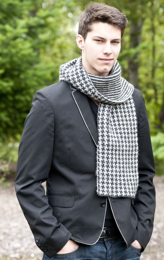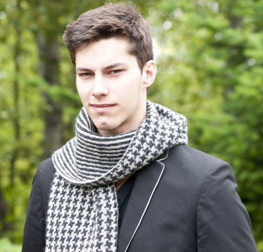 Отличный мужской вязаный шарф выполнен оригинальным двухсторонним узором. С одной стороны получается узор «Куриные лапки», а с другой – тонкие полоски. Обязательно свяжите такой шарф своему мужчине, ведь скоро 23 Февраля!