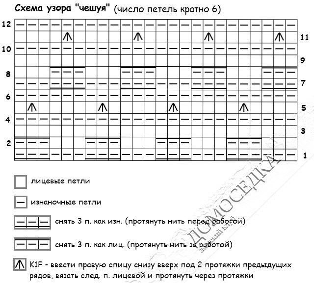 K1F - для формирования "чешуйки" ввести правую спицу снизу вверх под 2 протяжки предыдущих рядов (фото 6).