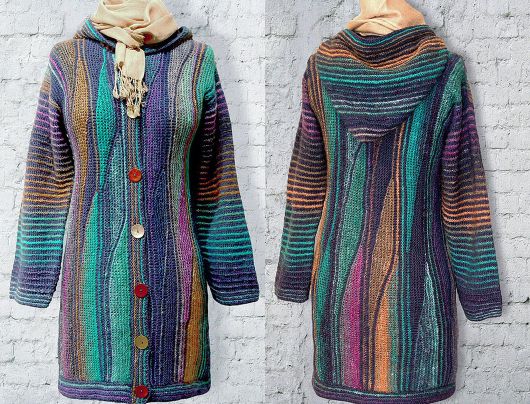 Вязаная куртка с капюшоном на молнии «Нескучная осень».