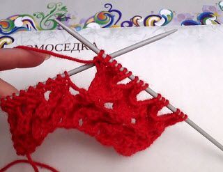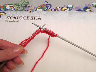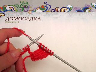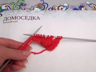 Затем добавить к 6-ти петлям 3 петли с левой спицы и сразу повернуть вязание на изнаночную сторону.