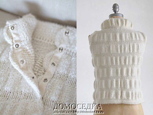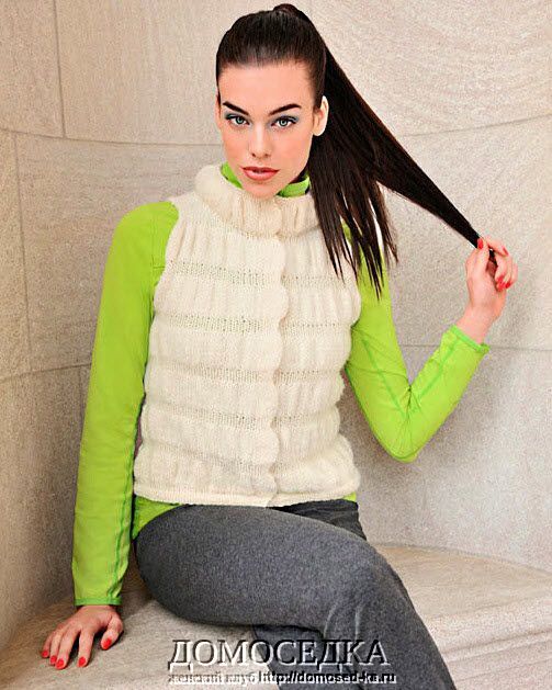 Красивая безрукавка от Olga Buraya-Kefelian выполнена спицами вязкой с эффектом стежки.