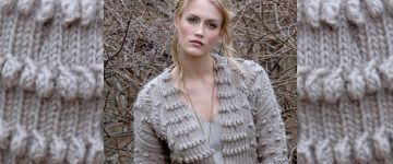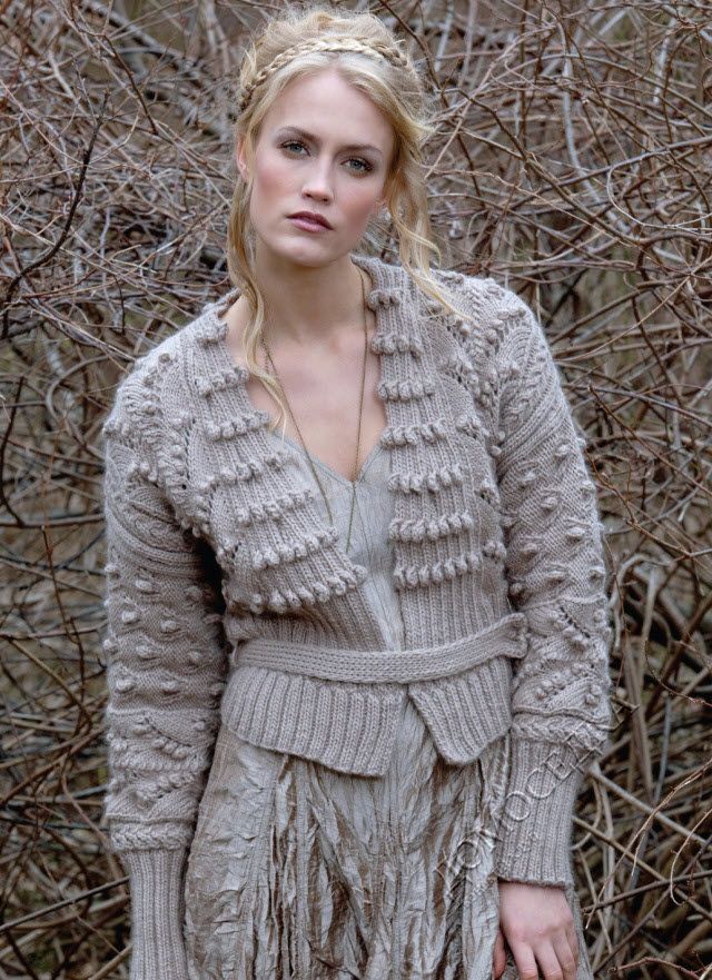 Красивая вязаная кофта от дизайнера Mari Lynn Patrick выполнен спицами комбинированным рельефным узором с шишечками.