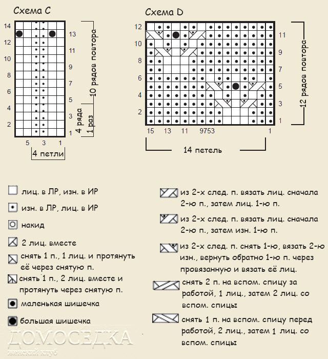 След. р. (ЛС): [2 изн., 6 п. по схеме А] вязать 1 (2, 3, 4, 5) раз, далее 27 п. по схеме В, затем 26 п. по схеме С, закончить 1 лиц.