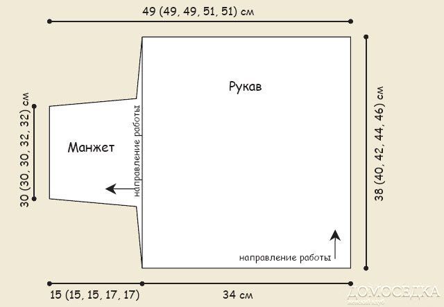 С лицевой стороны рукава на спицы меньшего размера поднять вдоль левой кромки рукава 62 (66, 70, 74, 78) лиц.