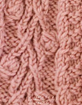 След. р.: 3 лиц., ПП, далее вязать следующий ряд узора Шиповник, ПП, затем следующий ряд узора Двойной мох, ПП, далее следующий ряд узора Шиповник, ПП, 3 лиц.