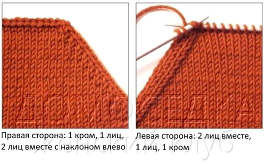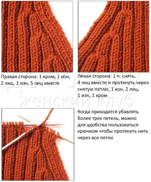 Используя любой из указанных методов убавления петель, можно оформлять боковые или центральные швы.