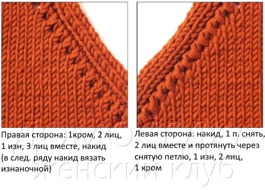 Красивый реглан или V-образный вырез горловины можно вязать разными способами.
