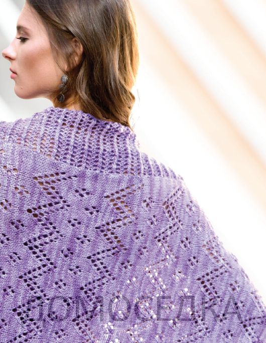 Красивый ажурный шраг от Gayle Roehm выполнен спицами.