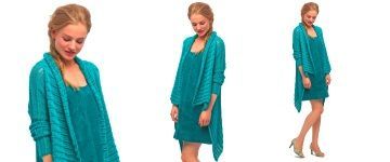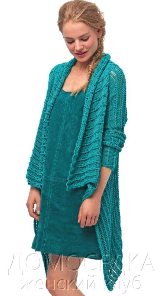 Красивый вязаный летний кардиган выполнен спицами из натуральной хлопковой пряжи изумрудного цвета.
