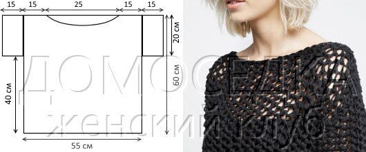 Набрать 24 петли и вязать узором сетка как спинку и перед. Через 15 см закрыть все петли.