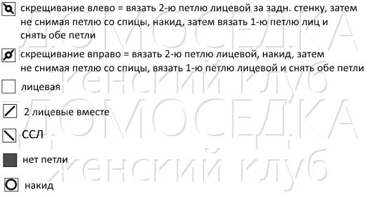 ССЛ = снять по одной 2 петли, вернуть петли обратно на левую спицу и вязать 2 лиц вместе за задние стенки.