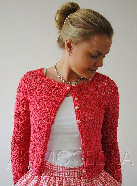 Симпатичная летняя ажурная кофточка от Maria Magnusson выполняется спицами снизу вверх.