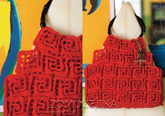 Узор wiggly в виде серпантина вяжется поверх основного сетчатого полотна сумки (см. му).