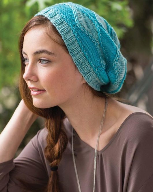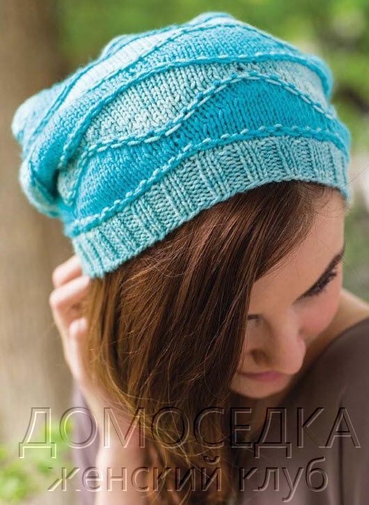 Стильная летняя вязаная шапка от Corrina Ferguson выполняется спицами круговыми рядами волнистым узором.