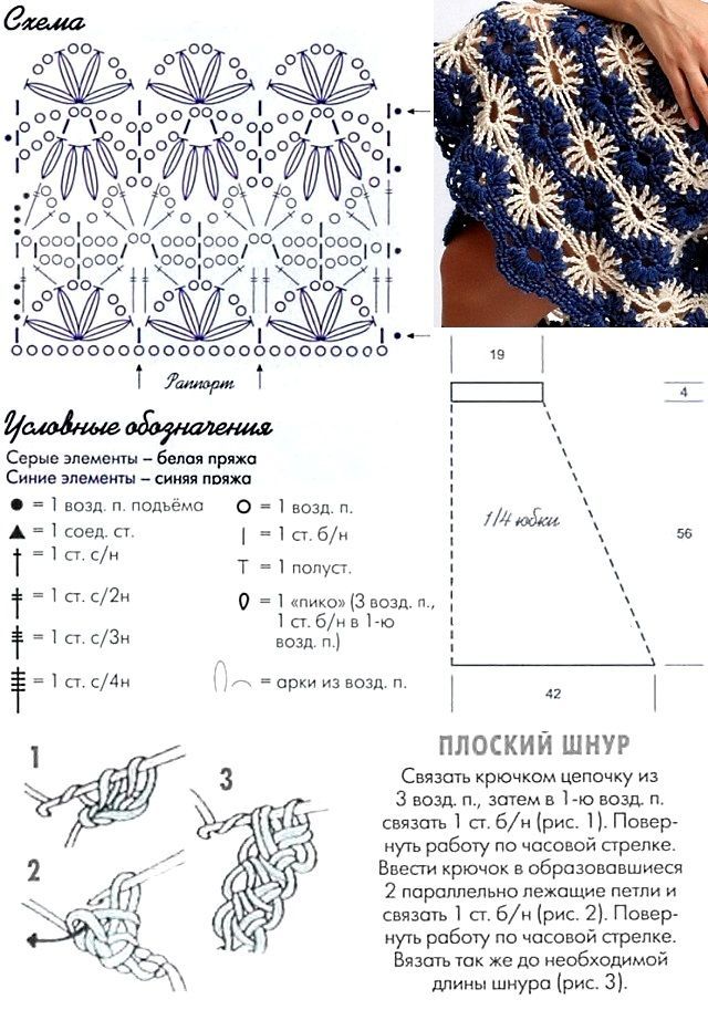 Летняя юбка вязаная крючком в сине-белой цветовой гамме из цветов, очень женственная и романтичная.