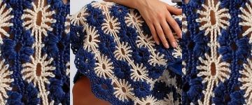 Для вязания 36/38 размера потребуется 250 г синей пряжи COUNTRY и 150 г белой пряжи CLASSICA; крючки №4, №5, №8 и №9.