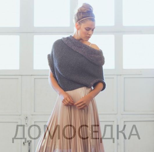 Перенести с держателя на спицы 20 (22, 244, 26, 26) петель левого плеча, с изнаночной стороны присоединить нить и связать 1 изнаночный ряд.