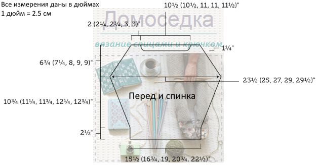 Перевод описания для размера S (M, L, XL, XXL). Окружность по нижнему краю 77.5 (84, 95, 104, 112.5) см. Точные размеры указаны на выкройке в дюймах (1 дюйм = 2.5 см).