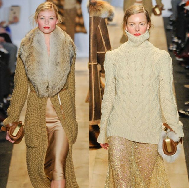 Шикарный свитер из аранов и вязаное пальто с меховым воротником продемонстрировал в своей коллекции дизайнер Michael Kors.