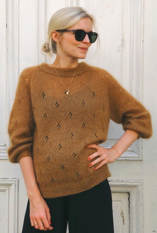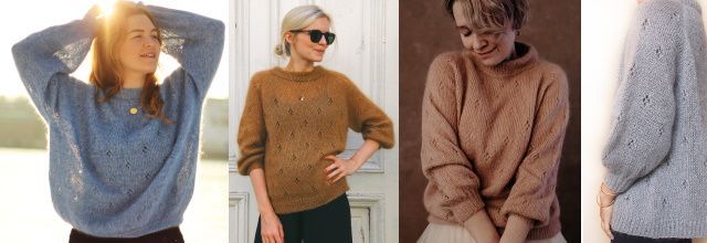 Пряжа: 175 (200) 225 (225) 250 (300) 325-350 г Soft Silk Mohair от Knitting For Olive (25 г/210 м) или Silk Mohair от Isager Yarn (25 г/212 м) или Tilia by Filcolana (25 г /210 м) или Tynn Silk Mohair by Sandnes Garn (25 г/212 м).