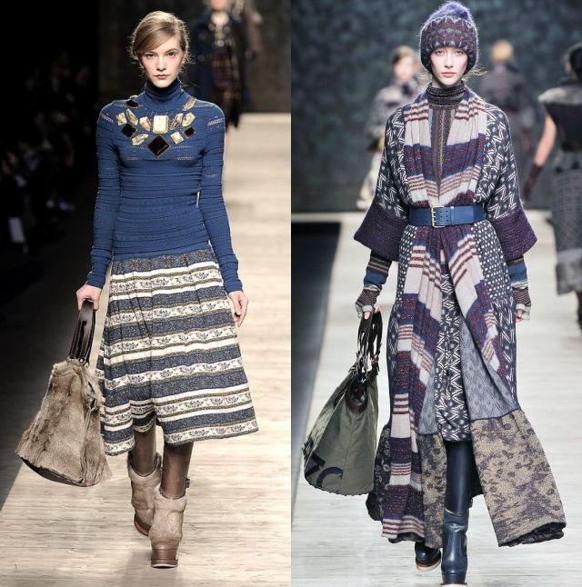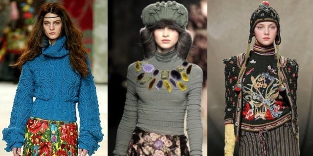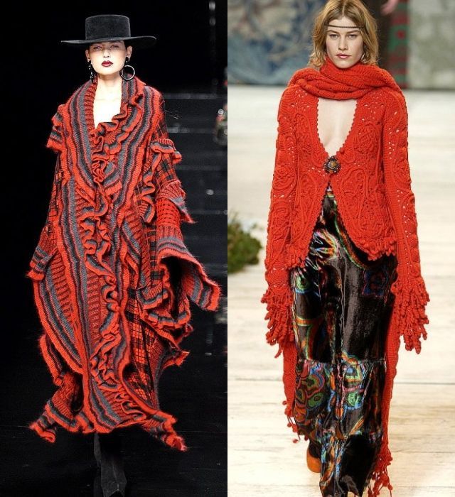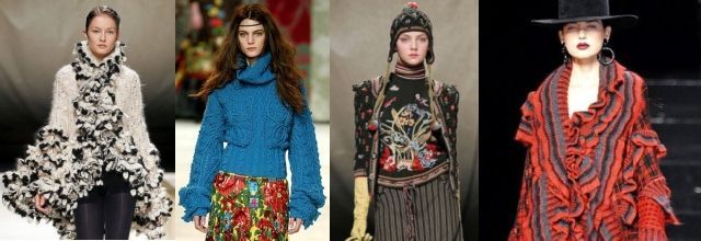 У мэтра особое отношение к трикотажу – дизайнер ценит ручную работу. В коллекциях Кензо встречаются вещи полностью связанные на спицах или крючком, а машинный трикотаж зачастую украшен вышитыми вручную орнаментами. Такада черпет вдохновение в традициональных костюмах разных стран. В своих работах он смешивает крой японских кимоно и русских косовороток, испанских болеро и индийских сари. Скандинавские, индейские, бедуинские мотивы объединяются в одно целое, образуя неповторимый стиль Кензо.