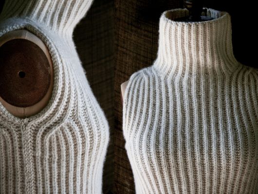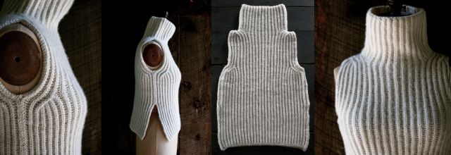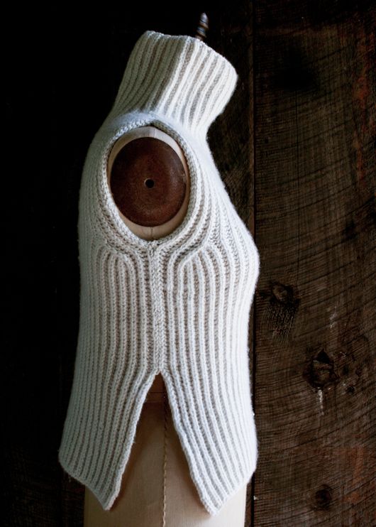 Стильная безрукавка с высоким воротником вязаная спицами резинкой BROICHE.