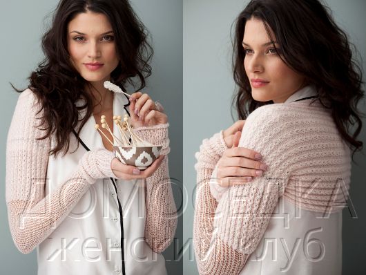Описание вязаного болеро от Cathy Carron для размера S (M, L, XL). Болеро вяжется спицами из тончайшей кашемировой пряжи.