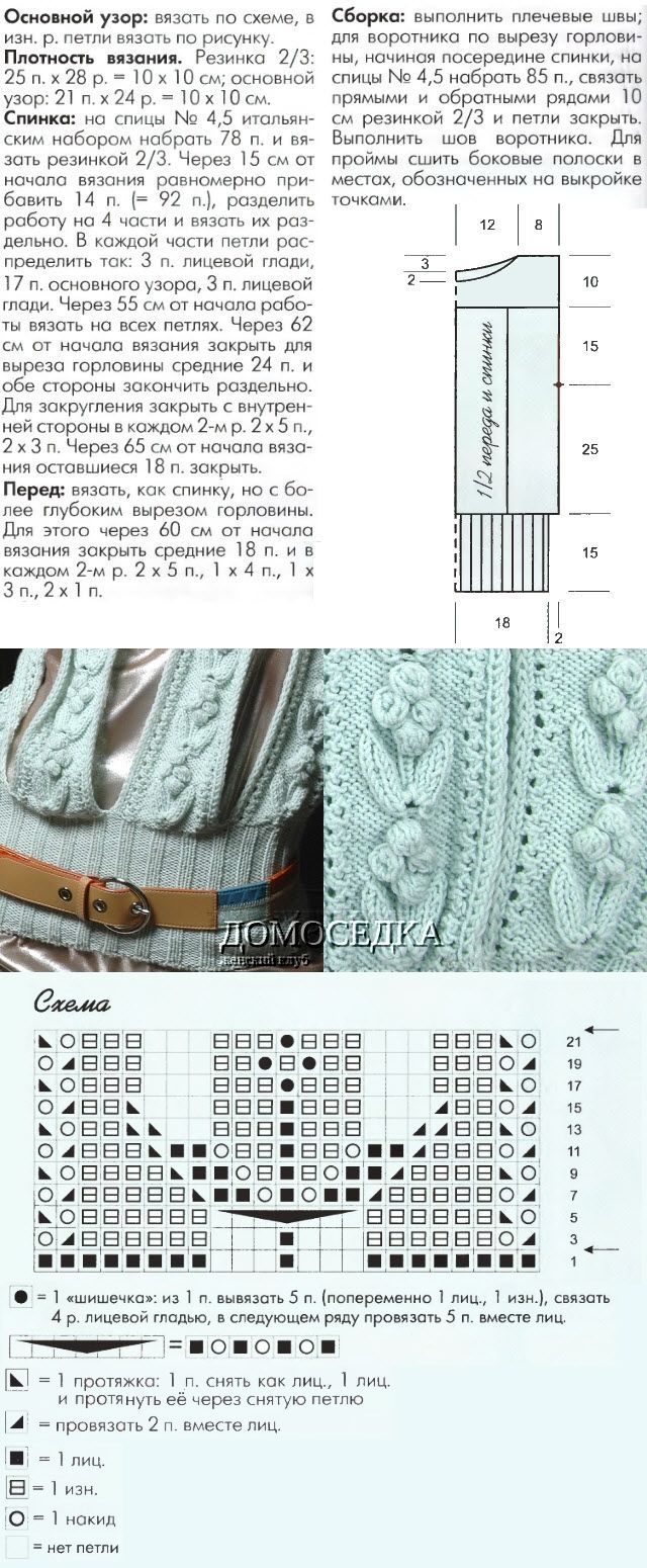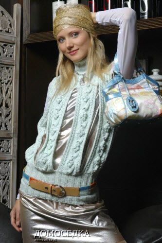Оригинальная безрукавка связана спицами отдельными полосами рельефным узором.