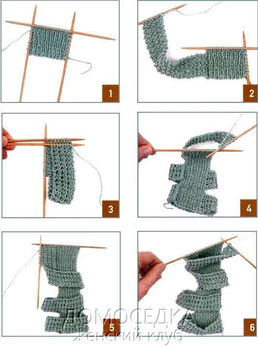 1-я Спица - свободной спицей вязать [1 лиц. за задн. стенку] 10 (12) раз в петли из накидов следующих за петлями резинки, набрать 20 петель;