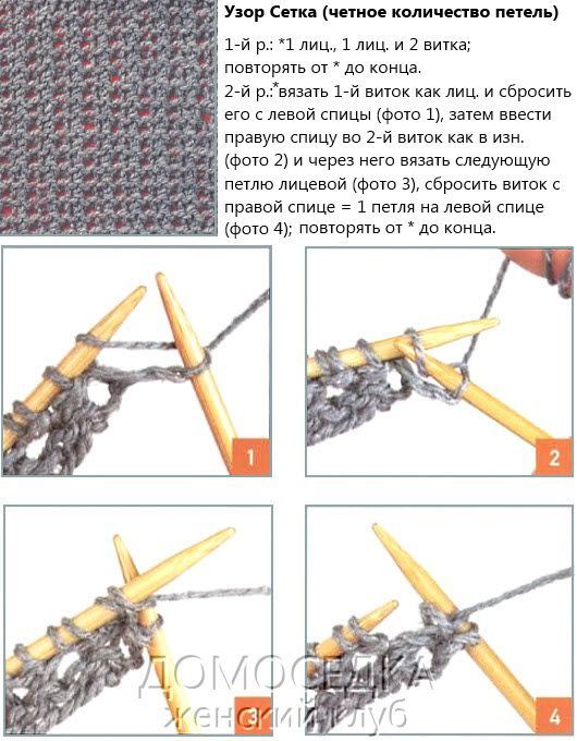 Узор Сетка в прямых и обратных рядах (смотрите фото).