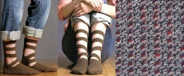 Оригинальные вязаные тапочки от Lynne Barr выполняются спицами эластичным двусторонним сетчатым узором и резинкой 1х1. Каждый тапок вяжется единой деталью без отрыва нити.