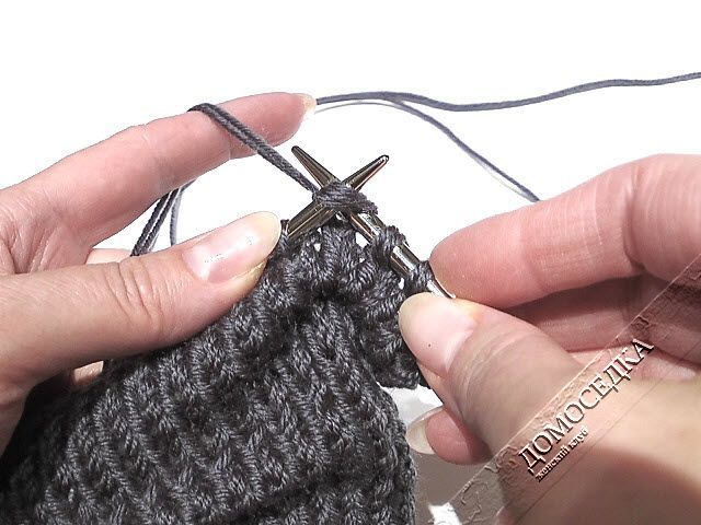 Вяжите поднятую петлю со следующей петлей как 2 лицевые вместе.