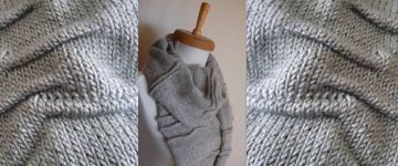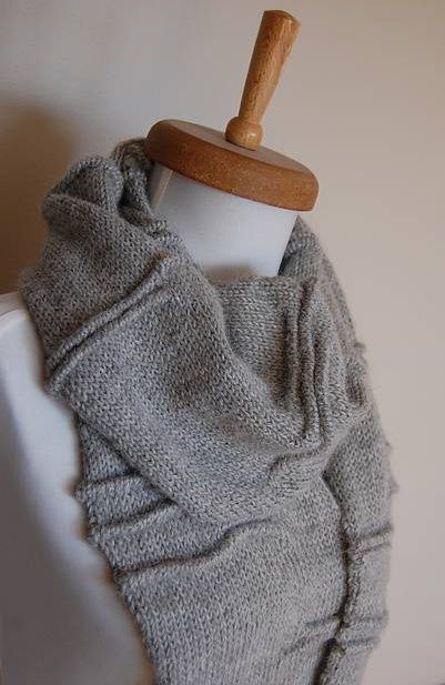 Оригинальный вязаный шарф выполнен спицами текстурной вязкой имитирующей складки.
