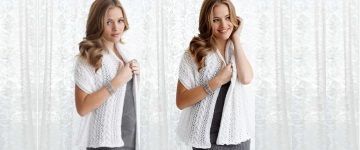 Для вязания потребуется: 3 мотка пряжи Lace Sequin (68% акрил, 14% полиэстер, 9% шерсть, 9% мохер; 314 м/70 г); спицы 4 мм.