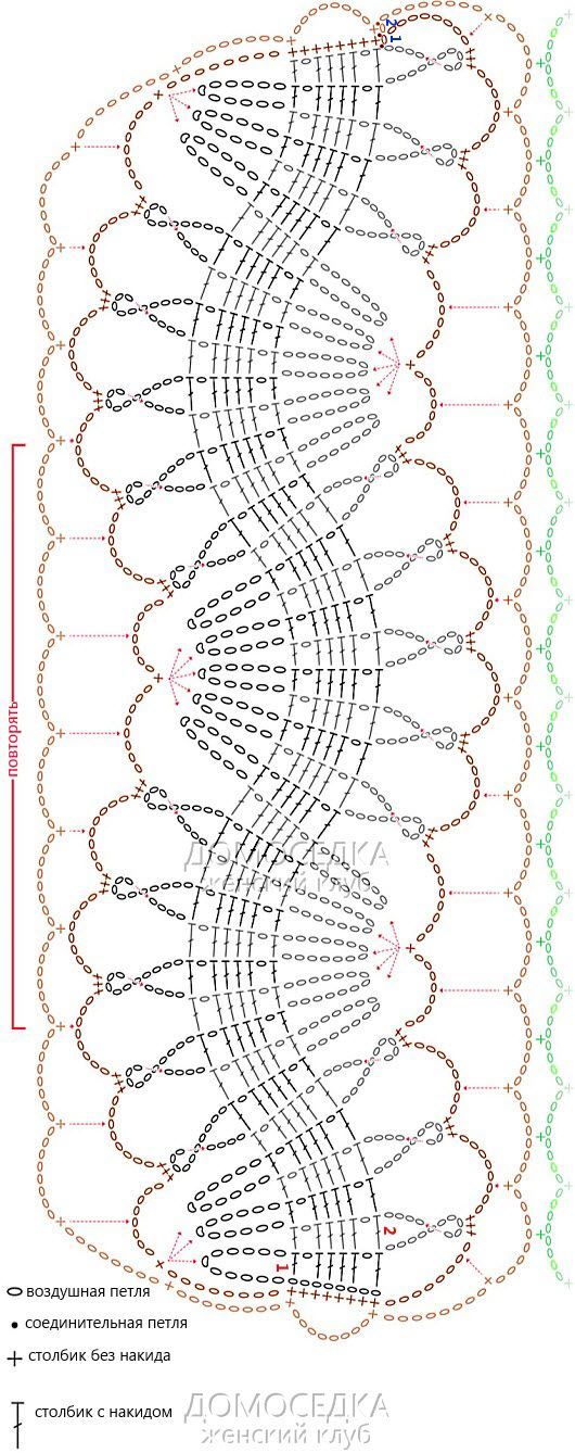 1-й р. (ИС): пропустить 14 возд. п., ст. с/н в след. возд. п., 1 возд. п., пропустить